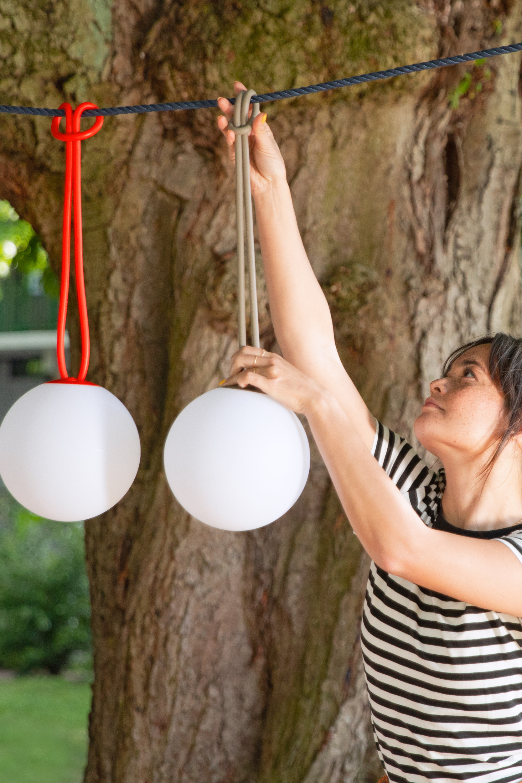 La Fatboy Bolleke inalámbrica, resistente y se puede usar en cualquier lugar gracias a su práctico lazo en bucle de silicona. La bombilla LED tiene 3 modos de iluminación y lazo en bucle está disponible en: gris, topo y rojo. Además, la lámpara esférica Bolleke se puede usar tanto en interiores como en exteriores y tiene una fuente de luz LED fija y de bajo consumo. Y lo más importante, la duración de la batería es increíble: dependiendo de la posición, esta esfera luminosa puede permanecer encendida durante 8-20 horas. Después, puede cargarse fácilmente mediante el puerto USB. El exterior de la Bolleke está fabricado de HDPE, mientras que el interior tiene una placa base de ABS con carcasa LED.